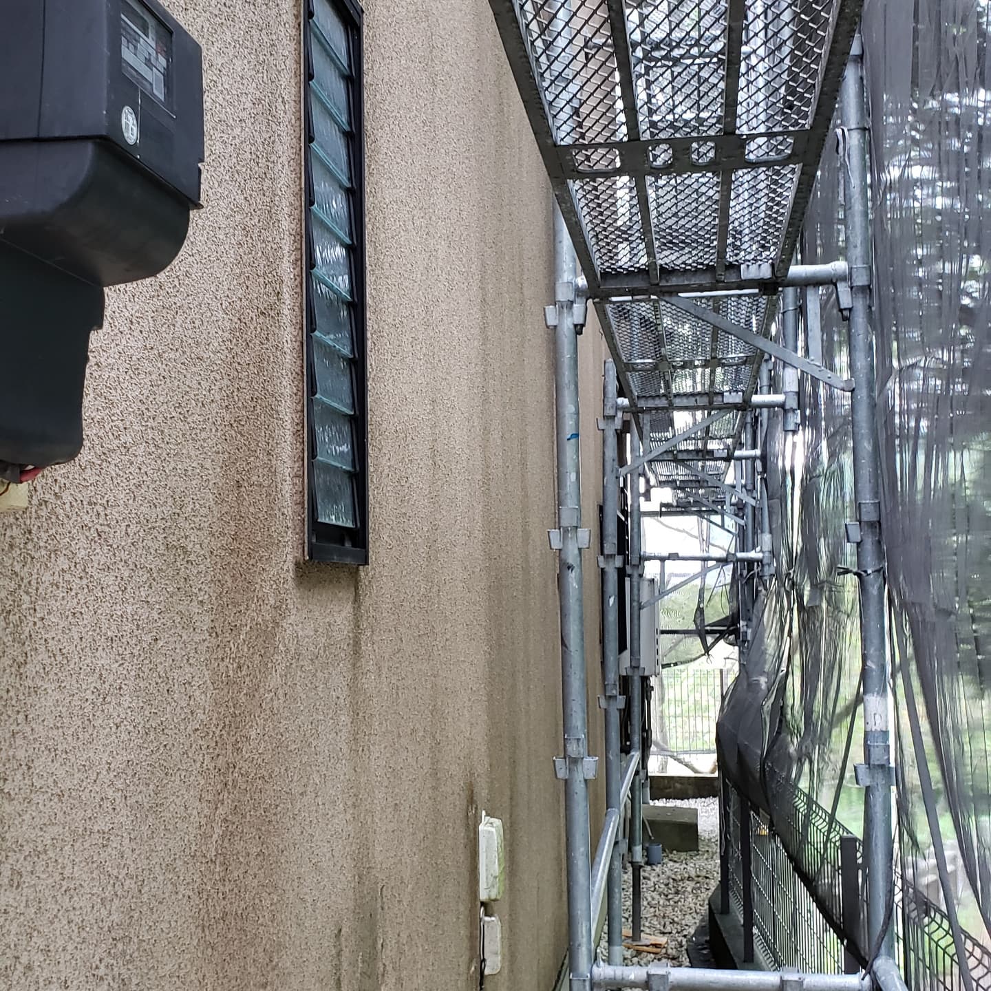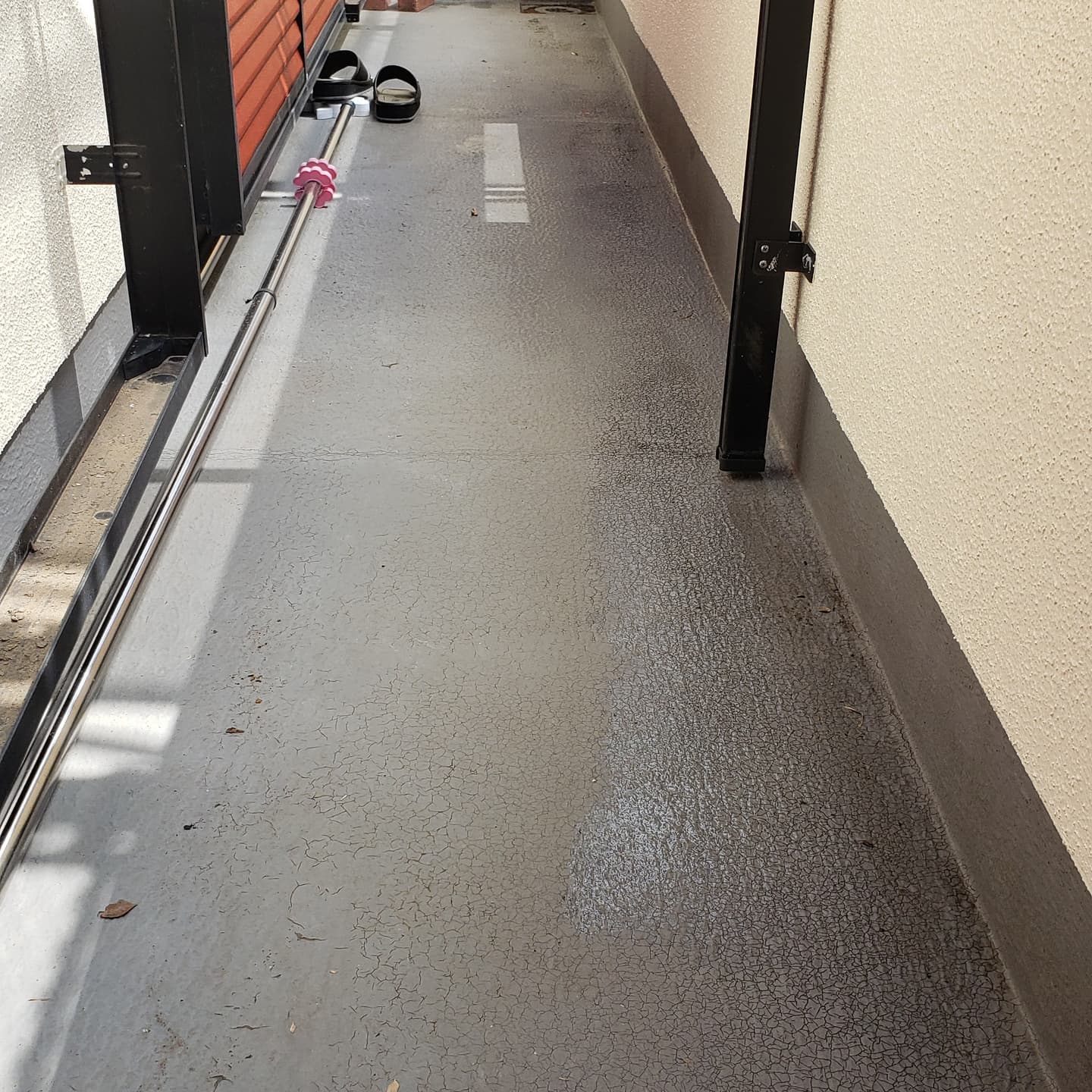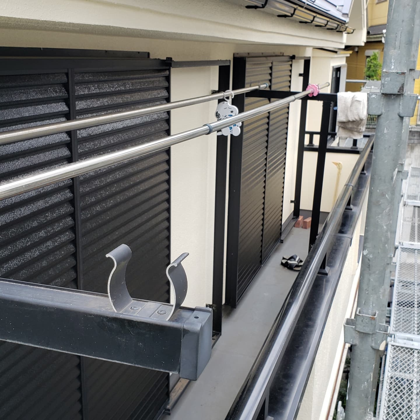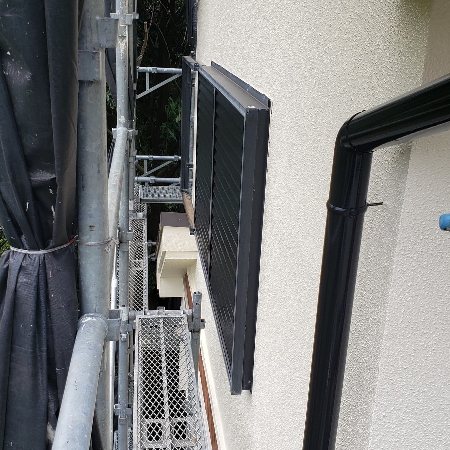 外壁、雨戸の塗替え・バルコニーの防水・雨どいの清掃など、行いました。