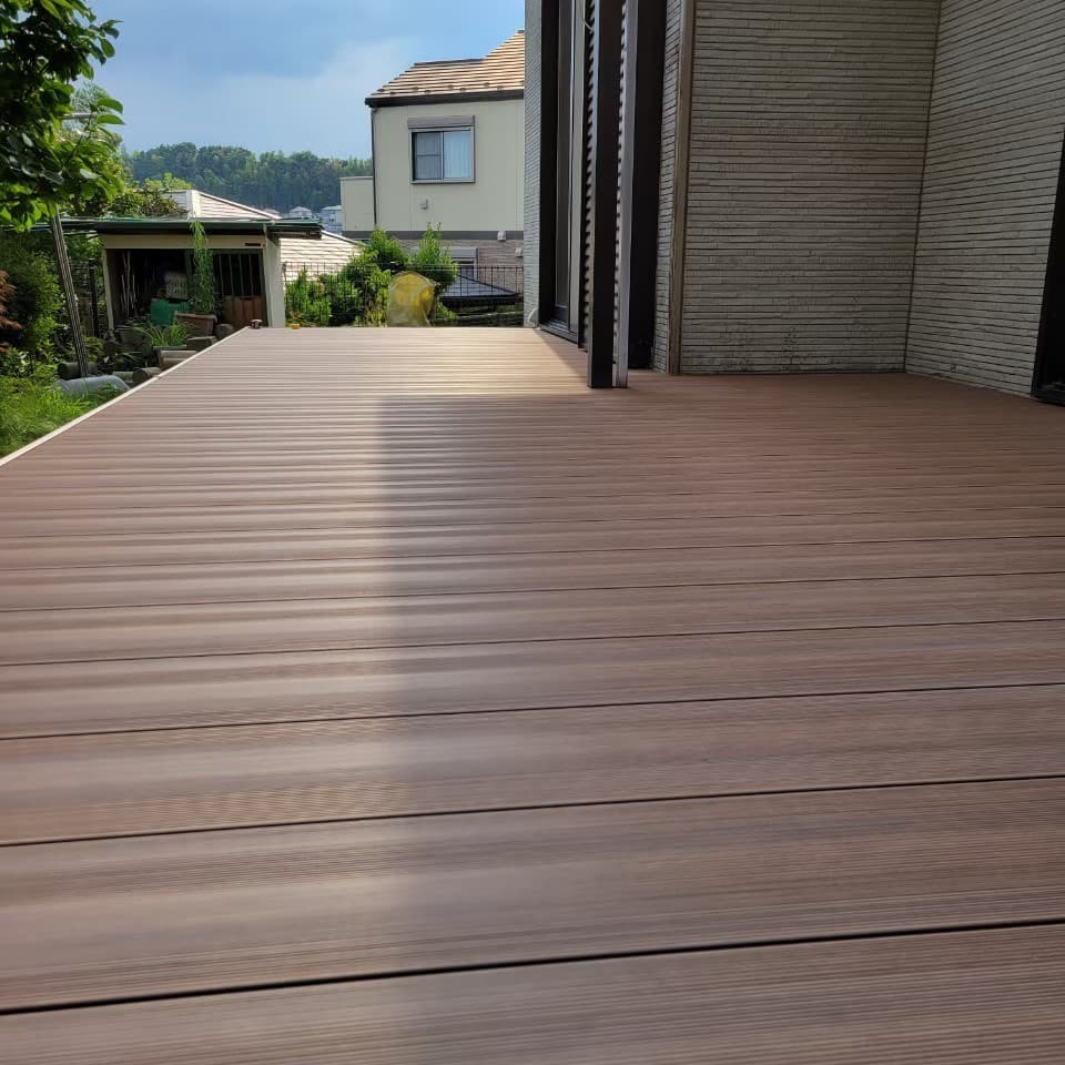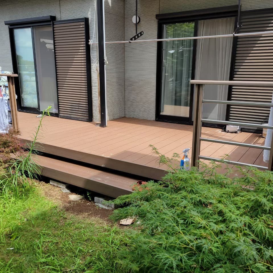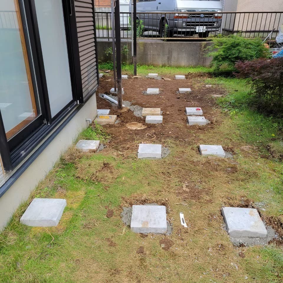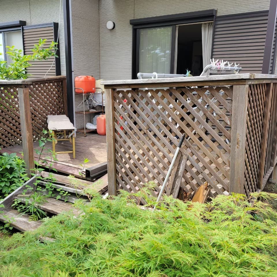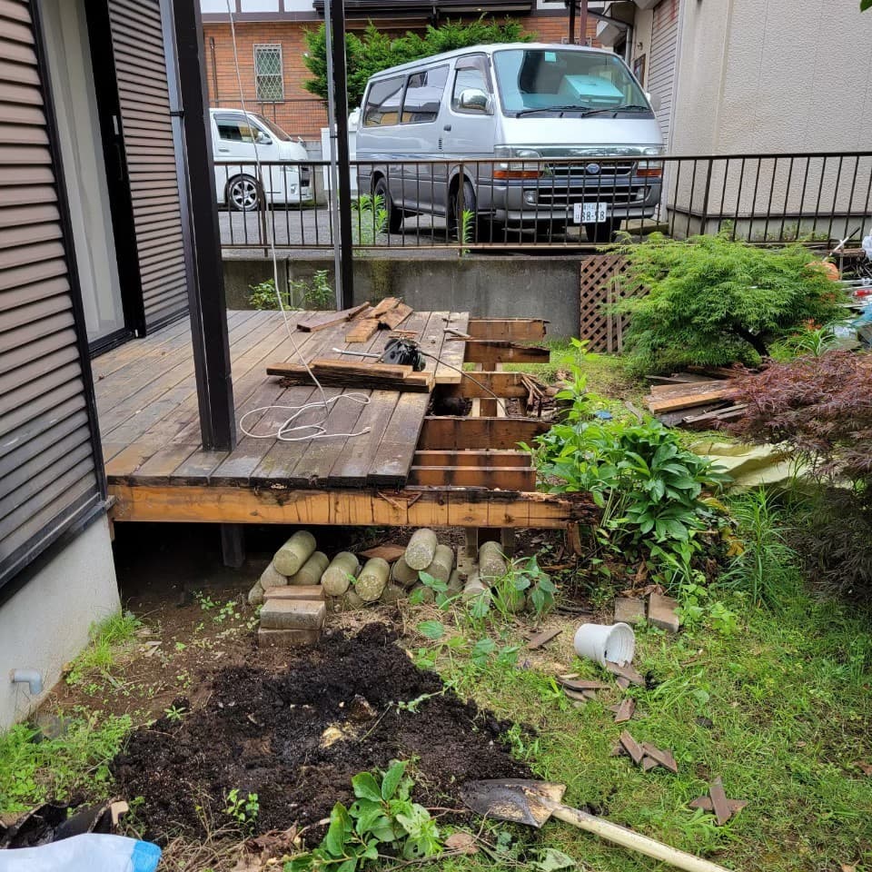 横浜市H様のお庭ではレッドシダー材のウッドデッキが劣化し、歪み・傾き・床板が抜ける等、日常使用するには危険な状態でした。基礎からしっかりと作り直し、アルミ製のウッドデッキ材を使用することで、安心してお使いいただけるようになりました。